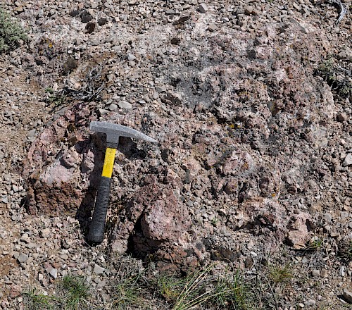 During gold mineralization in these types of deposits, the limestones are dissolved or decalcified, and the calcium carbonate is then remobilized to overlying and peripheral areas. Therefore, the exposed carbonate vein system, the silicification and favorable geochemistry could be the uppermost or distal portion of a large Carlin-type gold system yet to be identified, either beneath the exposed veins or outboard of the range front under pediment cover. Rare native sulfur in the jasperoid also indicates a distal setting.